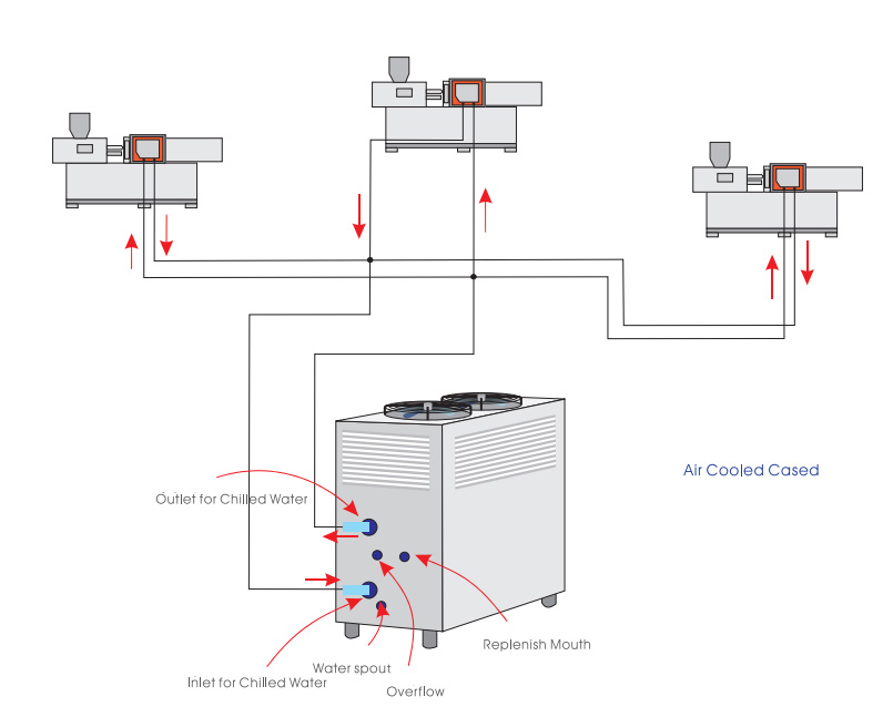 Cooling system of oil temperature, ultrasonic, high frequency machinery. Cooling system of injection molding machinery. Cooling system of blow molding machinery. Cooling system of the extruder.