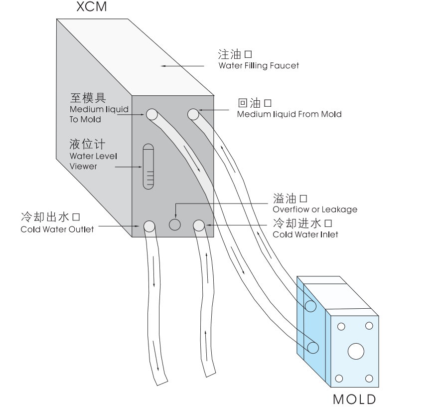 Unstable temperature in the process of mold forming always tends to produce unqualified products. According to the principle of heat exchange, XCM mold temperature controls make use of water and high-temperature heat-transferring oil as a medium to keep a proper stable temperature in the process of mold forming, so as to guarantee high-quality products and raise the productive efficiency.